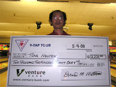 The Miller/Venture Champion is Tong Nguyen, For the second week in a row, a Life Member from the Tour's early days, takes the Title. Tong has the record for the most Tournaments entered in the history of the Tour. In 2006, Tong had a couple of 2nd place finishes, but this is his first win since April 2005. His 4th win since 2002 qualifies him for the GOLD Champions shirt. Despite just sneaking into the finals with a 913 qualifying score, he got HOT and shot some GREAT games in the Brackets (266-277). But, he did have the one BIG scare in the ONE pin win over Phil. Tong originally came to the U.S. in 1981 and started bowling as a Junior league bowler in 1985. For this win, he said that his Hammer "Offset" was the only ball he used, for the whole day. Tong said he may use the $2,221.00 he won, to take a trip to visit family back in Vietnam. He wanted to thank Jon Schneider for his support and for his long friendship through his years on the Tour. CONGRATULATIONS TONG!!