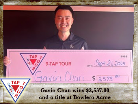 Gavin says he was going to take a break from 9-Tap for a bit but then decided to come out and give it a shot. After bowling the second squad he was ready to call it a day, but with a push from his friends he decided to bowl the final squad and boy did it pay off, $2,573.00 worth. His 844 was definitely a step up from his first try. Gavin plans to use his winnings to visit the Disney World over the holidays.