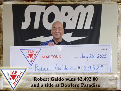 As we expected, there were several long strings of Taps chasing the 9-Tap Jackpot. We started with three bowlers hitting the Front-4 Taps, including Rachael Wood, a new addition to the Tour. Later, Roly Liscano who had SIX of the Front-7, then Oscar Gestoso had SIX in-a-row with a shot for the 7-Middle Taps. But it was Tahjei Materne who was able to string the Front-5 Taps to take the lead, earning $375.00 for his effort. Great job to all trying to break the bank. Since the Jackpot got off so easy this week, it soared to $8,967.00 for next week.