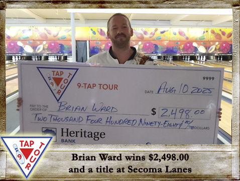 Out of all that, the 9-Tap Jackpot was not seriously challenged for most of the day. Jenn Jacobs came the closest to the Jackpot with 6 out of 7 Taps, but an errant shot in the 2nd frame cost her the prize. David Kim hit the Front-4 Taps to take the $150.00 consolation prize. The 9-Tap Jackpot took its largest one-week increase ever, leaping over ONE THOUSAND DOLLARS in one tournament, and will be at $10,380.00 next week.