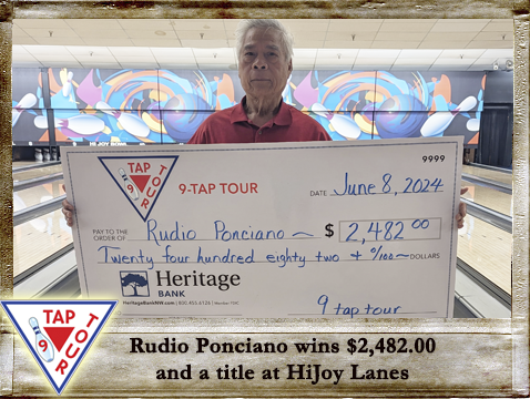 #2 came at old Cascade Bowl in Renton, on 1/9/2005 and Title #1 at Seattle's old Magic Lanes 2/5/04. Ponciano's Membership #424 gives a hint that he joined the Tour before it was even one year old (early 2003). In less than 2 years he had already earned TWO Tour Titles. He made a brief comeback in 2007/08 before returning to the Tour again in 2023. Up until two weeks ago, he'd had little success since his return... but his determination certainly has paid off, in his last two entries he's finished 7th at Bowlero and returned to the Winner's Circle this week after 19+ years. The huge 855 series earned him his largest Career payday of $2,482.00. His first game Saturday was his highest by nearly 20 pins, since returning 11 months ago and his series was obviously a Personal Best in that period. Ponciano has created a GREAT COMEBACK story, overcoming some health challenges. His family said that bowling has been helpful therapy for him!! The 'tools' Ponciano used for this Win were his Raw Hammer ball, while wearing his Dexter shoes, all from the Somoff Pro Shop at Secoma. Son, Philip, often bowls with him, but unfortunately not at HiJoy. His comments after the Tournament were to thank everyone for being so friendly and supportive.