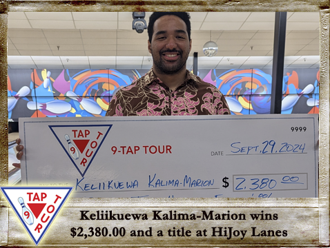 Keliikuewa Kalima-Marion took his first Championship Title with his spectacular 854 series at Hi-Joyin Port Orchard. Keliikuewa, whobecame a regular on the Tour back in February, set his Personal Best Game & Series to reach the Top Spot. He says the 9-Tap Tour has been helping to improve his game and he is happy to be a part of these Tournaments. He would like to thank his wife Lola, siblings Mao & Naioki Marion for cheering him on. He earnedhimself a sweet check for $2,380.00 which he said is going straight into savings!