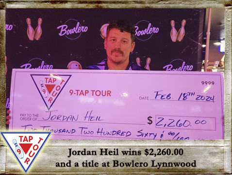 This week's champion had to survive the proverbial "target on his back," as Jordan Heil shot a 1064 for his 1st 9-Tap Tour Championship. Jordan said, that he just focused on his mark, and relaxed by having good laughs with the people on his pair. Jordan also said now he can stop hearing stuff from his dad, Darren, who won a tournament a few months ago. Jordan wanted to thank his fiance, Tayler, for letting him spend the day at the bowling alley. Jordan lost by 7 pins at Bowlero-Lynnwood, back in May, and was thrilled to redeem himself this weekend. Jordan earned $2,260 for his outstanding bowling. Congratulations Jordan!